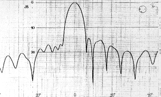 Energy transmitted by a typical modern radar antenna. 0 marks the axis ("where radar is pointing").